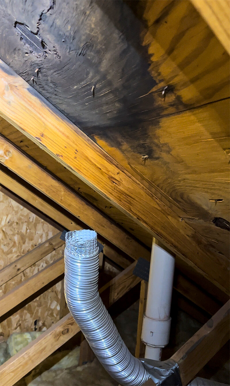 We even discovered that the bathroom exhaust fans were venting directly into the attic space, rather than being properly routed to the exterior. This created several dangerous conditions: