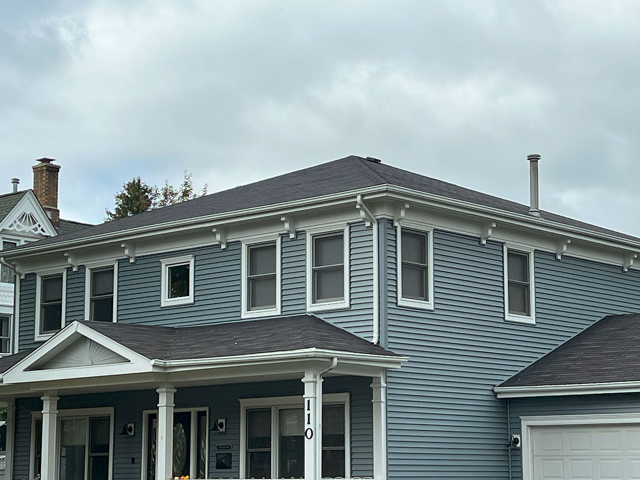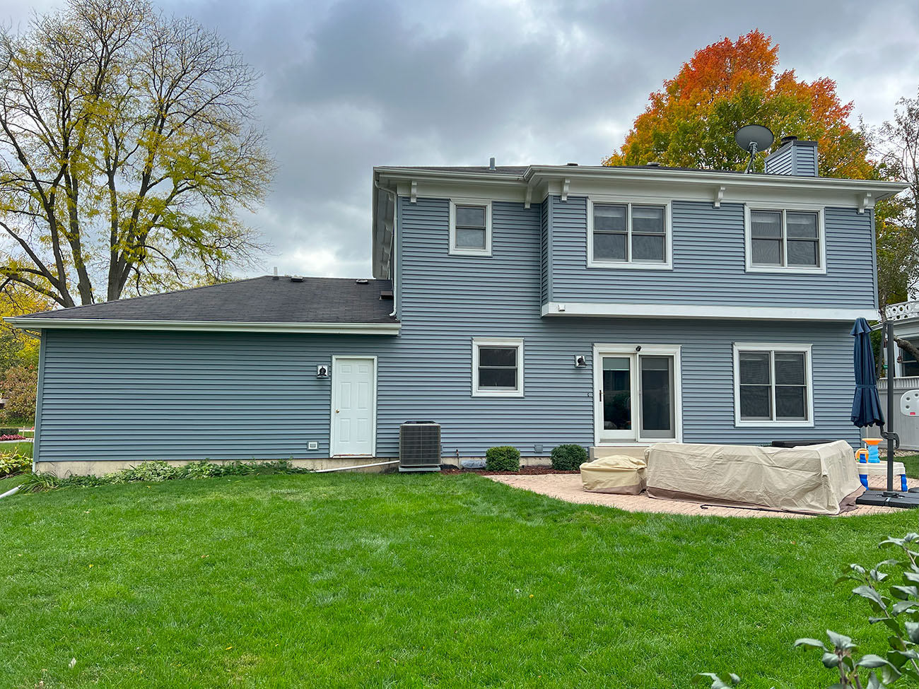 Located in Arlington Heights, IL, the project involved the replacement of worn-out vinyl siding (the existing siding suffered from disconnections and lacked proper house wrap channels in some areas), the repair of missing tiles on the roof, and addressing missing J-channels and flashing on a number of window installations.