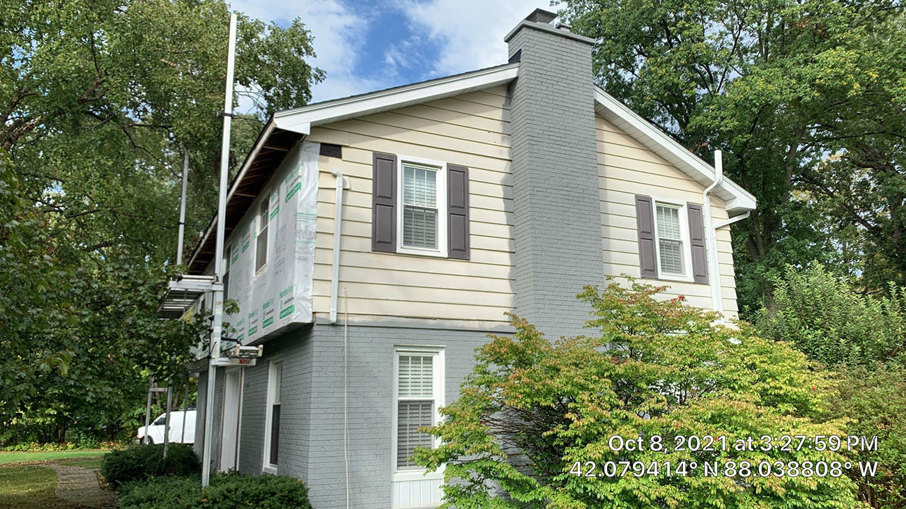 A resident of Palatine, IL, contacted our construction company on April 6, 2022 in need of gutter replacement, roof replacement, and siding replacement. Family had a few roofing leaks and their old siding was worn and outdated. Our team visited the property and assessed the condition of the roof, gutters, and siding.